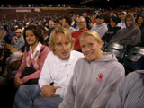 Tara and I stayed in SF while I was working the Cisco Global Sales FY05 conference at Moscone Center. On Tuesday night one of the hotels gave our company 4 tickets to the Giants game. Great seats, row 6 right behind 1st base. Then about 30 minutes into the game, Owen Wilson came and sat in the 1st row, directly in front of us. Tara went down to get a picture with him. A few minutes after that, Owen's brother Luke showed up too. |