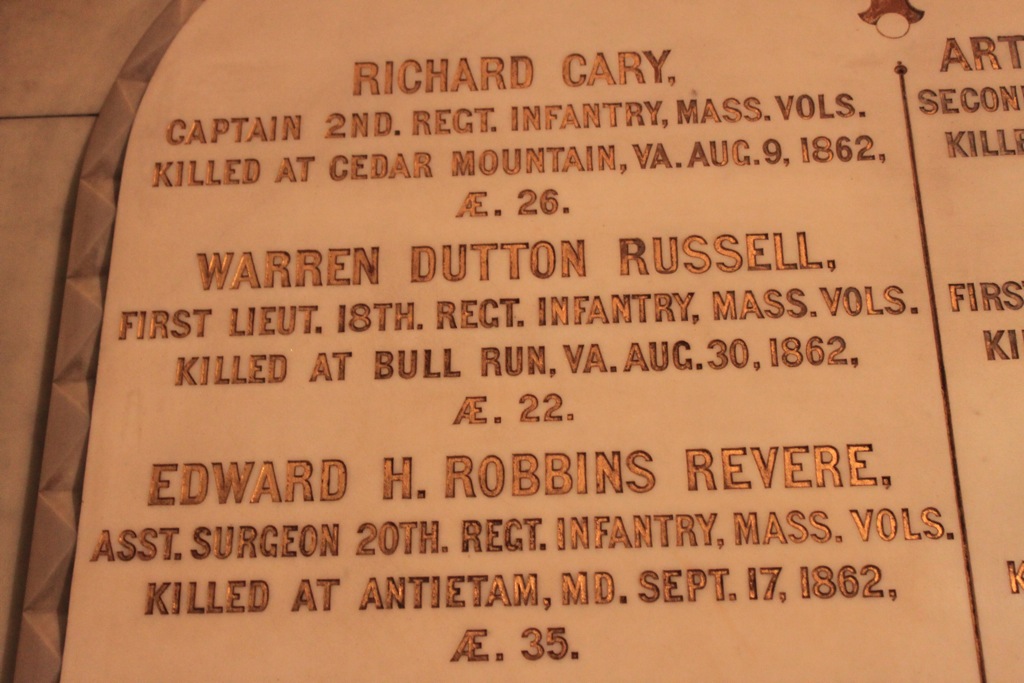 | 33 | Inside King's Chapel, a memorial to the fallen Union members from the Civil War. I wonder if I'm related to Warren Dutton Russell? | IMG 3420 | 10/21/10 7:43 AM | 1024x683px | 184kB | |